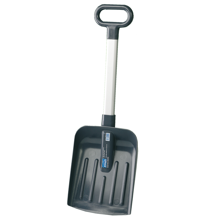 Skovlens håndtag samt selve bladet er produceret af kraftig plast. Længden på skovlen er 69cm og den er dermed kort nok til, at den nemt kan være i bilen og lang nok til at være praktisk når der skal fjernes sne omkring køretøjet.