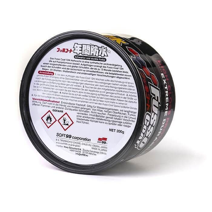 Fusso Coat 12 Months - Holdbar coating med Teflon (PTFE-teknologi), ultra vandafvisende, til mørke biler Soft99 bedste coating til lakerede overflader: