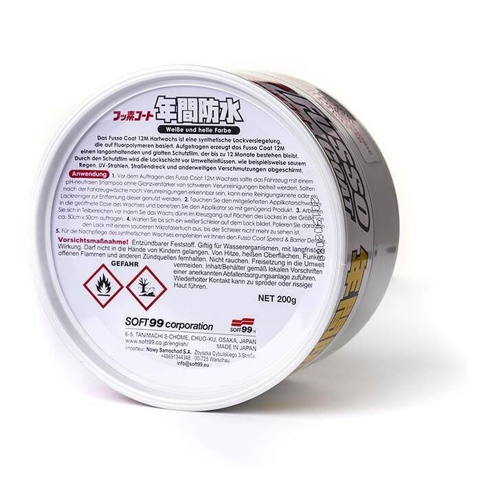 Fusso Coat 12 Months - holdbar coating med Teflon (PTFE-teknologi), ultra vandafvisende, til lyse biler. Soft99 bedste coating til lakerede overflader. Produktet danner en ultra hydrofobisk/vandafvisende belægning, med en levetid på op til 12 måneder. Produktfordele:
