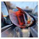 • Bøj papbagsiden i en halvcirkelform og placer den i mellemrummet mellem spejlet og dets hus for nem påføring uden risiko for at sprøjte på andre dele af bilen.
