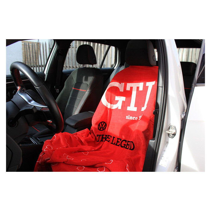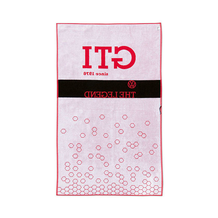 VW GTI Strandhåndklæde ''The Legend'' i rød Stort badehåndklæde i rødt design med VW GTI logo og "The Legend" bogstaver. Håndklædet af høj kvalitet er alsidigt og er den perfekte ledsager til den udendørs pool eller den lokale badesø.