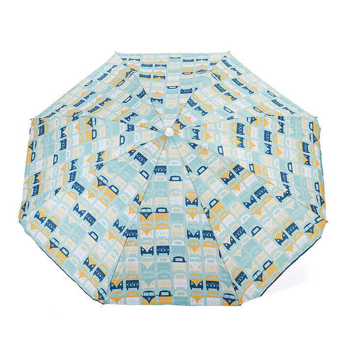 Strandparasol med VW T1 motiv. Parasollen er perfekt til ture til stranden, picnic eller i din egen have. Den er højdejusterbar og giver UV beskyttelse.