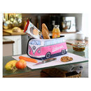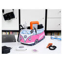 Unik universal toilettaske / kosmetiktaske lavet af blødt neopren og formet som en VW T1 bus i pink. Tasken er multifunktionel og kan anvendes som: