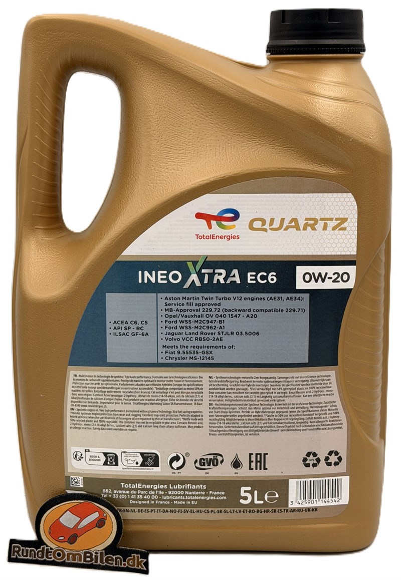 Total Quartz INEO 0W-20 Xtra EC5 er en fuldsyntetisk certificeret benzinbesparende motorolie, der kan bruges til et væld af biler både med og uden udstødningsgas regulerende foranstaltninger som EGR- ventiler mm. Olien forhindrer LSPI (Low Speed Pre-ignition), et problem som nogle højtkomprimerende biler kan lide af og som kan skade motoren.