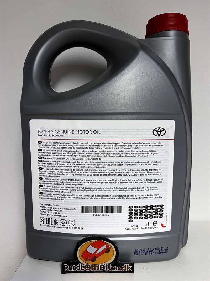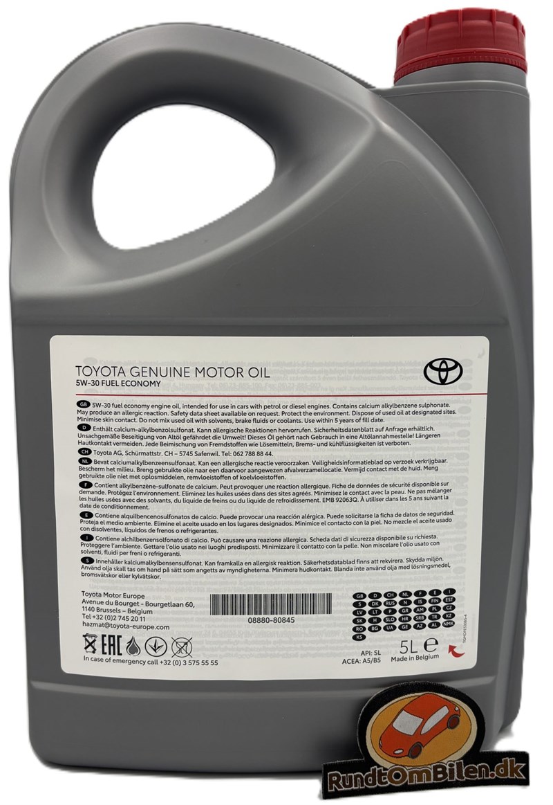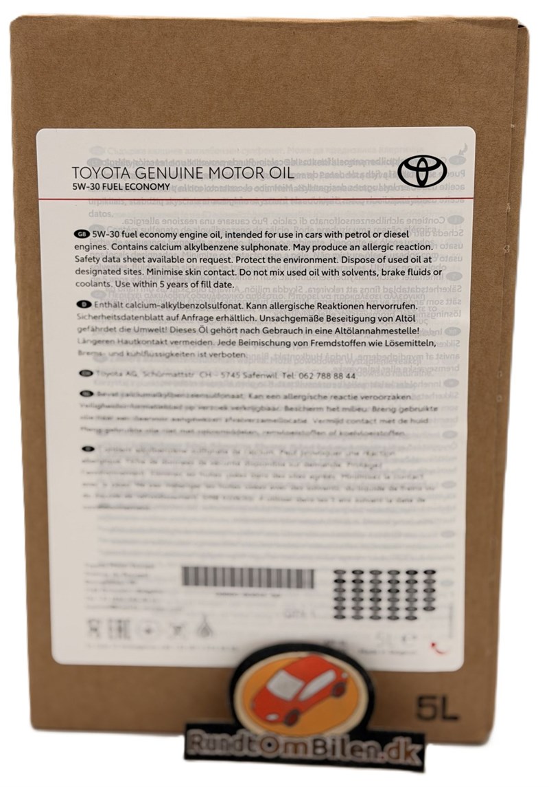 Bemærk: Vi lagerfører to udgaver af Toyota 5W30 motorolie, denne som hedder "Fuel Economy" og "Premium Fuel Economy", motorolien er ikke den samme, husk at bestille den rigtige.