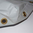 Denne trailerpresenning er med 7cm dobbeltkant og syet hjørner og så er den monteret med ståløjer (Stålringe) samt kraftig elastik snor. Super kvalitet i tykt og meget holdbart materiale der er nemt at rengøre!