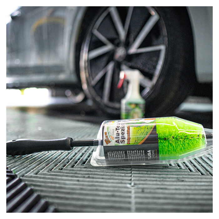 Opnå en skinnende ren finish med Tuga Alu-Teufel Spezial fælgborste – den perfekte makker til Alu-Teufel Spezial fælg rens. Børsten er designet til at fjerne selv det mest genstridige snavs som bremsestøv, olie- og gummirester samt flyverust. De slidstærke og fleksible børstehår sikrer grundig rengøring uden at ridse, mens det ergonomiske greb giver optimal komfort og kontrol – selv under intensiv brug. Børsten måler 30 cm.
