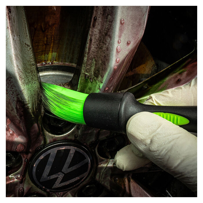 Tuga Fælgpensel – Specialudviklet til Alu-Teufel Spezial Den specialudviklede Tuga fælgpensel er den ideelle makker til Alu-Teufel Spezial fælg-rens. Penslen er designet til at forstærke rengøringseffekten og fjerne selv det mest genstridige snavs. Med sine robuste og holdbare børster løsner den nemt bremsestøv, olie- og gummirester samt flyverust. Takket være det ergonomiske design og det komfortable greb ligger penslen godt i hånden og gør rengøringen både enkel, sikker og effektiv – selv ved intensiv brug.