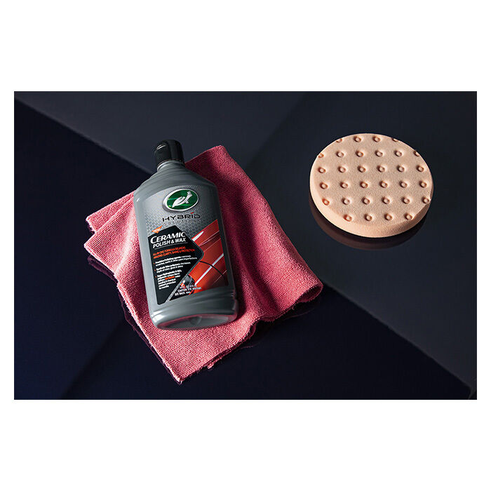 Turtle Wax Hybrid Solutions Ceramic polish & wax er en ALL-IN-ONE FORM, der giver utrolig klarhed, glans og beskyttelse. Den indeholder polermiddel, der fjerner ridser og andre urenheder i lakken og syntetiske vokspolymerer, der øger dybden, klarheden og glansen af lakken. Superhydrofobe SiO2-polymerer i en unik blanding, der giver ekstrem perleeffekt og overfladebeskyttelse, der varer i måneder.