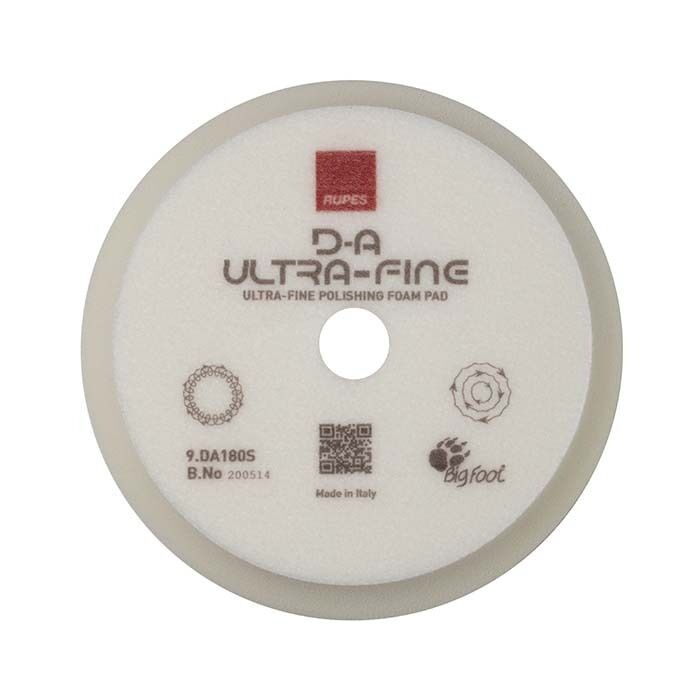 DA Ultrafin-skumpude er den af Rupes skumpuder, med den fineste kvalitet. Den er designet til ultrahøj glansbehandling og polering af sløret eller meget blød maling. Den nye unikke materialesammensætning af DA Ultrafin-puden viser en lysere hvid farve med mindre tilbøjelighed til gulfarvning over tid og kan også bruges til påføring af fugemasse eller voks, når der ikke kræves nogen korrektion.