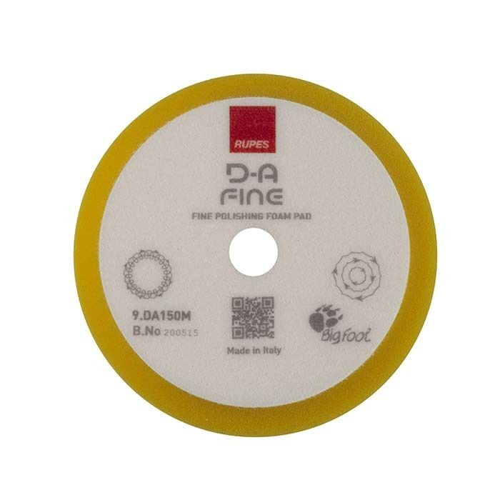 DA "Fin"-skumpude er den mest alsidige skumpude i Rupes BigFoot-serien. Den leverer en effektiv hastighed for fjernelse af defekter, samt mulighed for højglansbehandling på de fleste malingssystemer. Skumpuden anbefales at bruges sammen med Rupes DA-FINE poleringsmasse til fjernelse af moderat til fine defekter, finjustering af maling eller endelig efterbehandling efter tunge blandingstrin.