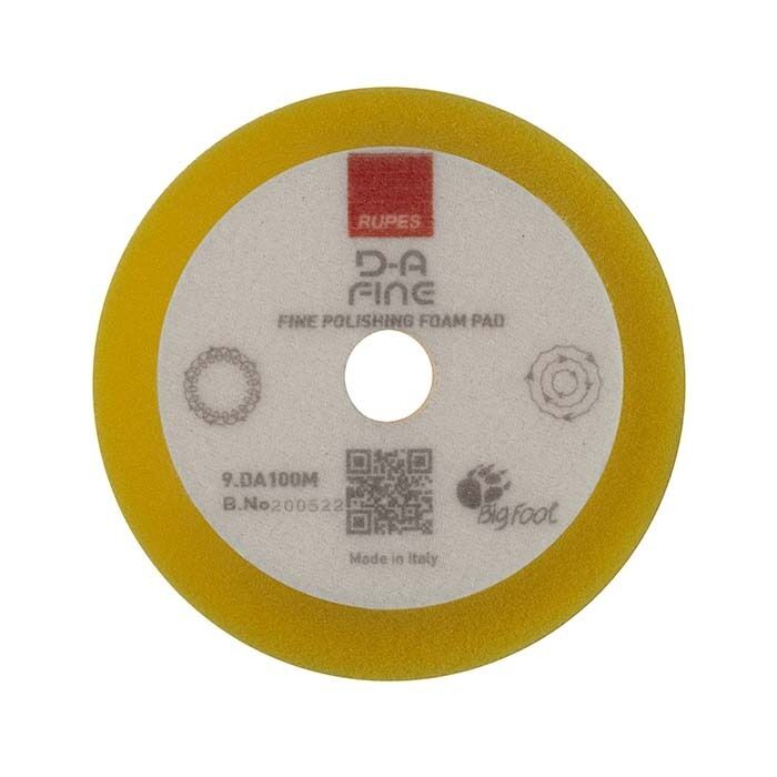 DA "Fin"-skumpude er den mest alsidige skumpude i Rupes BigFoot-serien. Den leverer en effektiv hastighed for fjernelse af defekter samt mulighed for højglansbehandling på de fleste malingssystemer. Skumpuden anbefales at bruges sammen med Rupes DA-FINE poleringsmasse til fjernelse af moderat til fine defekter, finjustering af maling eller endelig efterbehandling efter tunge blandingstrin.