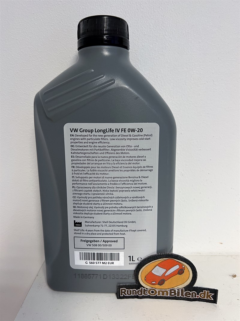 - Den nye originale VW motorolie med normerne 508.00 og 509.00