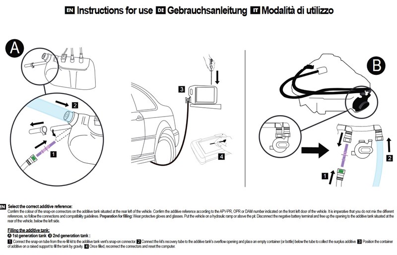 Kig altid i bilens instruktionsbog for de korrekte tilsætningsmidler!